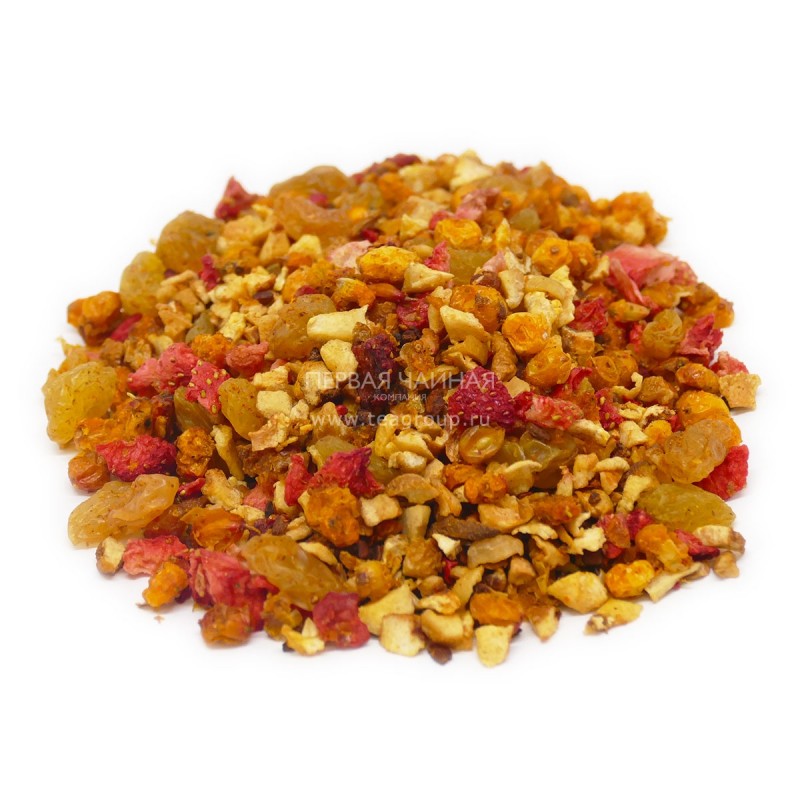 Фруктовая смесь из кусочков груши, белого королевского изюма, корицы и сублимированных ягод клубники и облепихи. Незабываемый слегка пряный вкус сушеной груши с легкой кислинкой облепихи. Богатый источник витаминов, способствует повышению иммунитета. Отлично освежает и утоляет жажду!